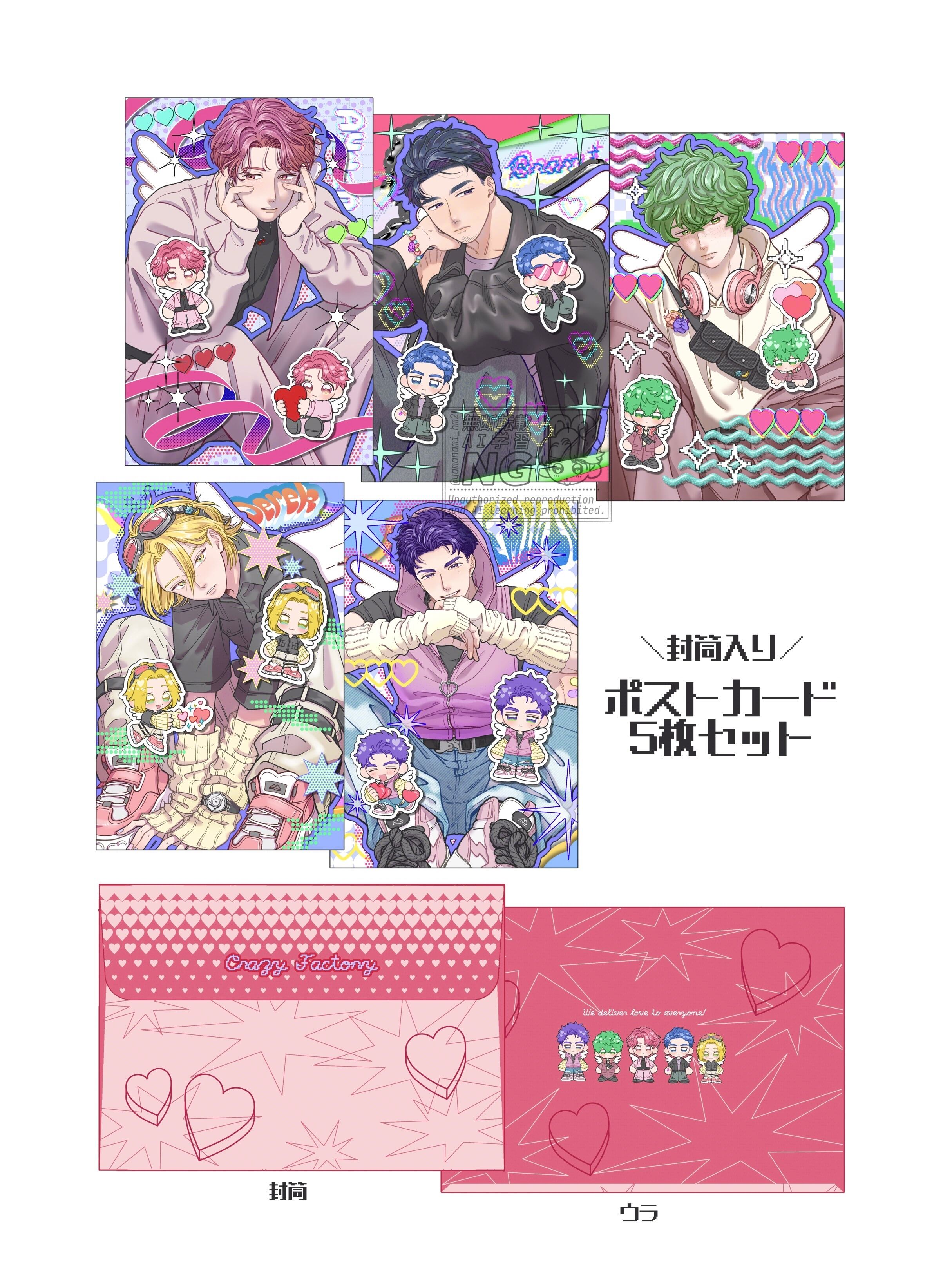 ポストカード5種類+オリジナル封筒のセット